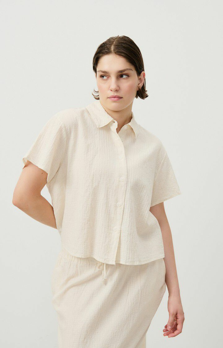 Réponse. La chemise Ylyvow présente une coupe fluide et légèrement ajustée pour un confort optimal.