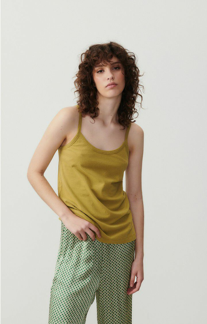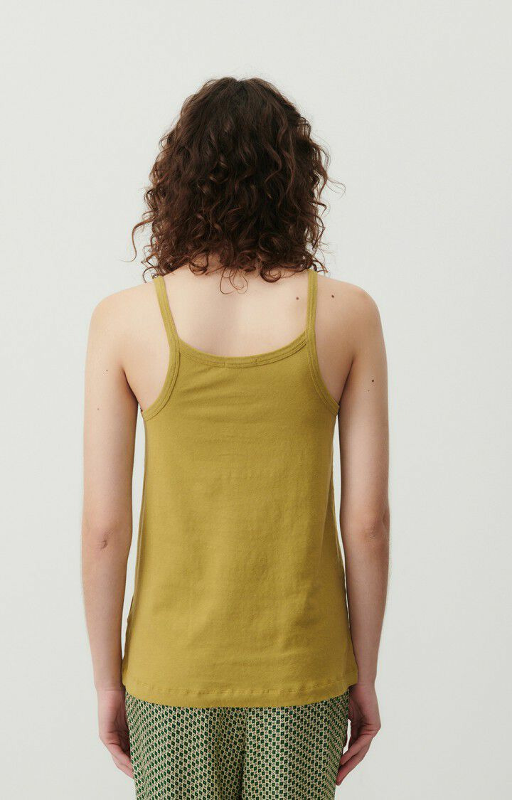 Confectionné en 100% coton, ce débardeur American Vintage allie confort et respirabilité pour accompagner vos journées actives ou vos soirées décontractées. Sa texture douce et naturelle épouse la peau sans contrainte, tandis que sa coupe ajustée met en valeur votre féminité avec discrétion. Facile à porter seul ou en superposition, il s’adapte à tous les styles et saisons.