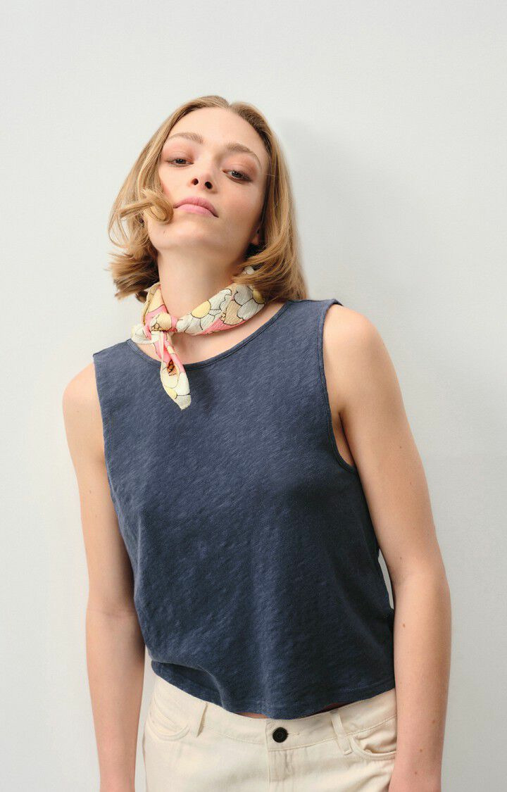 Confectionné en 100 % coton, ce débardeur American Vintage offre une douceur naturelle et une respirabilité optimale. Sa coupe marcel met en valeur la silhouette tout en garantissant une liberté de mouvement idéale. Léger et facile à associer, il s’impose comme un basique raffiné, parfait pour sublimer vos looks en toute saison.