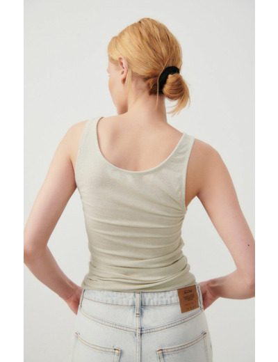 Conçu pour les femmes qui recherchent confort et style, ce débardeur marcel American Vintage allie la fluidité du modal à la chaleur de la laine, enrichie d’une pointe d’élasthanne pour une liberté de mouvement optimale. Sa texture légère et respirante s’adapte parfaitement aux variations de température, offrant une sensation de bien-être durable. Polyvalent, il se porte seul ou en layering pour un look raffiné et naturel.