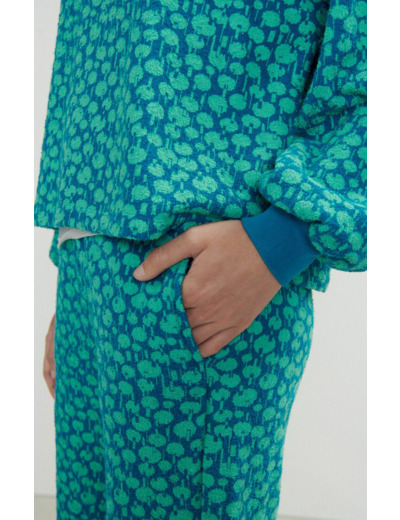 Composition 100% coton issu de l’agriculture biologique. Lavage conseillé à 30 degrés, séchage en tambour interdit pour préserver la fibre. Repassage à basse température recommandé.