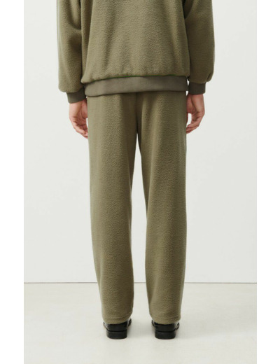 Composé à 100 % de polyester issu de fibres recyclées, ce jogging demande un lavage à 30 degrés et interdit le séchage en tambour pour préserver la qualité des fibres.