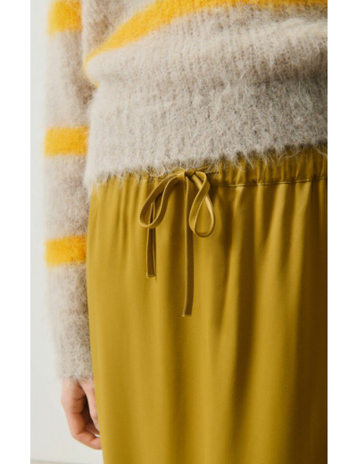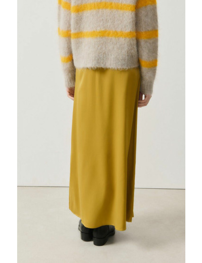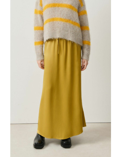 Confectionnée en 100% viscose, cette jupe fluide épouse délicatement la silhouette tout en offrant une sensation légère et respirante. Son design épuré et sa coupe longue apportent une touche de sophistication naturelle, idéale pour créer des looks féminins et modernes sans effort.