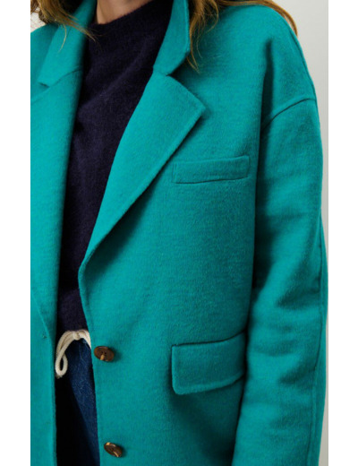 Conçu par American Vintage, ce manteau associe la chaleur de la laine à la résistance du polyester pour un équilibre idéal entre douceur et durabilité. Sa silhouette épurée s’adapte à toutes les occasions, du bureau aux sorties urbaines, en apportant une touche contemporaine à vos tenues. Léger mais isolant, il vous accompagne sans compromis sur le style.