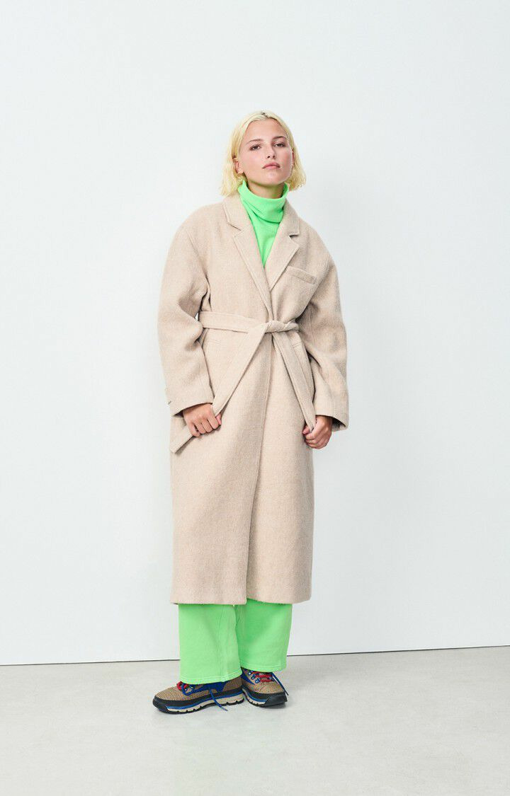 Confectionné dans un mélange de laine et fibres recyclées, ce manteau offre une douceur naturelle et une chaleur optimale. Sa coupe moderne et épurée sublime toutes les silhouettes, tandis que ses finitions soignées témoignent du savoir-faire de la marque. Parfait pour affronter les journées fraîches avec une allure sophistiquée et décontractée.