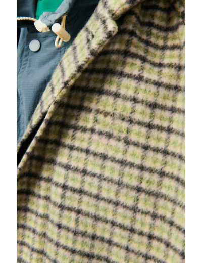 Fabriqué à partir de 70% laine, 20% polyamide, 5% acrylique et 5% autres fibres, ce manteau allie robustesse et douceur. Son nettoyage doit être effectué exclusivement à sec pour préserver la qualité des fibres et la forme du vêtement.