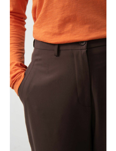 Sa coupe city fluide épouse parfaitement la silhouette, offrant une allure sophistiquée et décontractée à la fois. La matière douce et légèrement stretch garantit une liberté de mouvement optimale, idéale pour vos journées actives en ville ou vos rendez-vous professionnels. Son design minimaliste se marie aisément avec toutes vos tenues, du blazer structuré au pull léger.