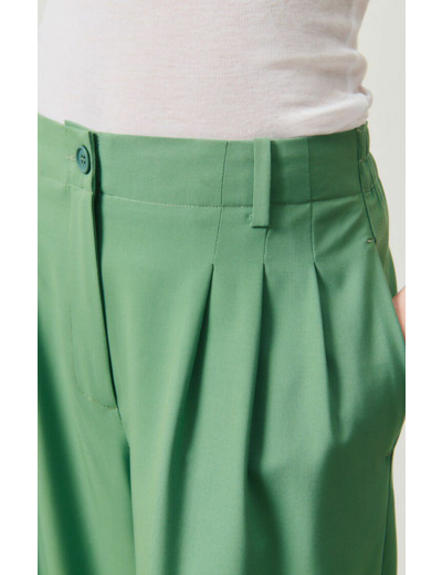 Composé à 48% de polyester dont 45% de fibres recyclées, 47% viscose et 5% élasthanne, ce pantalon se lave à 30 degrés. Le séchage en tambour est déconseillé et le repassage doit être effectué à basse température pour préserver la qualité des fibres.