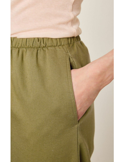 Composé à 72% de coton issu de l’agriculture biologique et 28% de lin, ce pantalon se lave à 30 degrés. Le séchage en tambour est interdit pour préserver la qualité des fibres. Le repassage se fait à basse température afin de maintenir la texture et la forme du tissu.