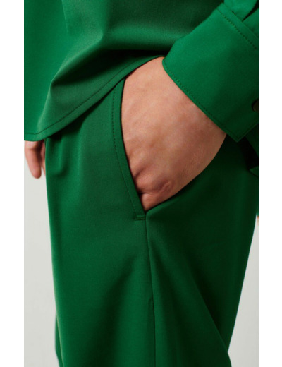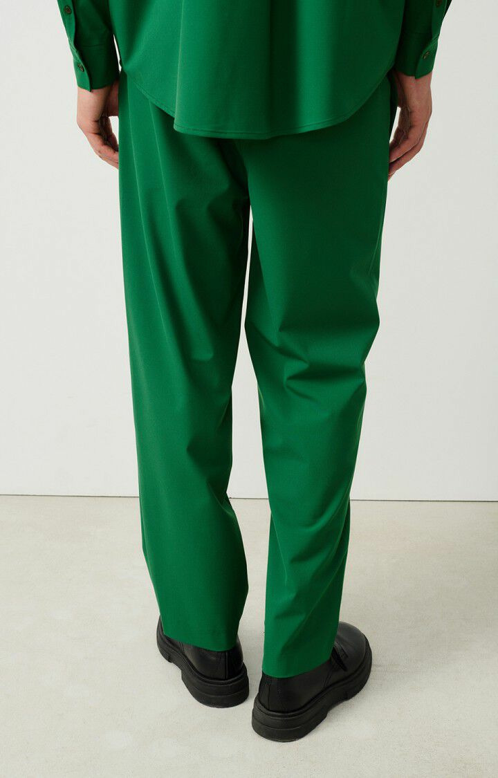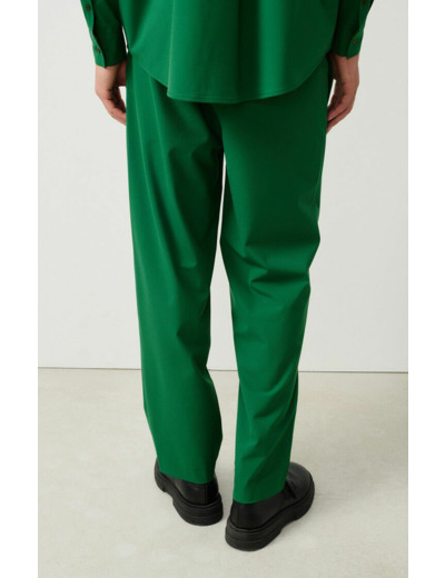 Composé à 48% de polyester dont 45% de fibres recyclées, 47% viscose et 5% élasthanne, ce pantalon se lave à 30 degrés. Le séchage en tambour est déconseillé pour préserver la qualité du tissu. Le repassage doit être effectué à basse température afin de maintenir la douceur et l’aspect du vêtement.