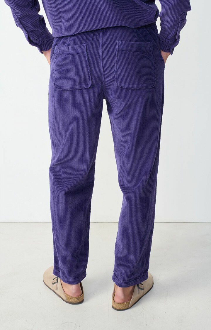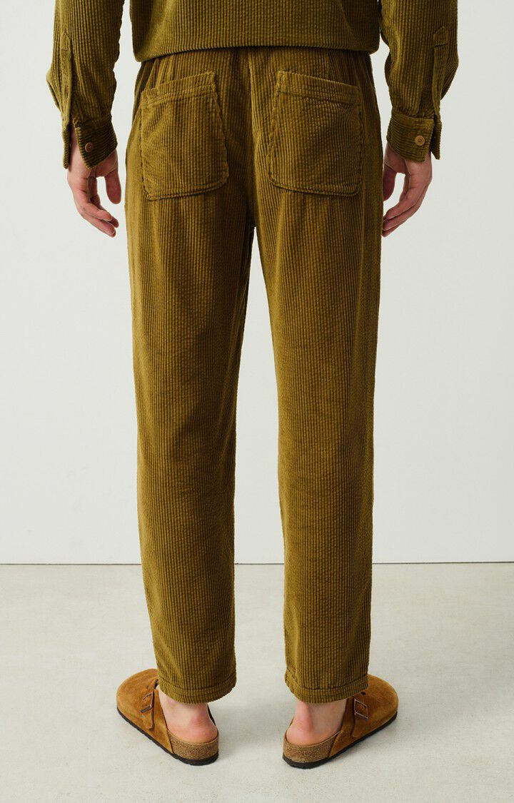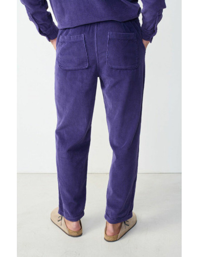 Fabriqué en 100% coton velours façon côtelé, ce pantalon se lave à 30 degrés. Le séchage en tambour est déconseillé pour préserver la matière, et le repassage doit se faire à basse température afin de maintenir la qualité du tissu.