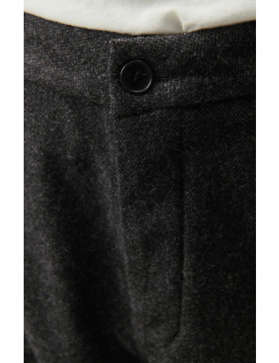 Confectionné dans un mélange raffiné de polyester, laine, viscose et élasthanne, ce pantalon offre une silhouette ajustée tout en garantissant une liberté de mouvement optimale. Sa coupe soignée et ses finitions discrètes s’adaptent aussi bien aux journées de travail qu’aux sorties en ville, pour un look à la fois chic et décontracté.