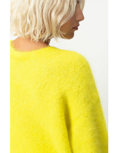Confectionné dans un mélange précieux d’alpaga, ce pull offre une texture légère et chaleureuse, idéale pour les journées fraîches. Sa coupe ajustée et ses manches longues dessinent une silhouette féminine tout en garantissant une liberté de mouvement parfaite. Le design épuré s’adapte facilement à toutes vos tenues, du jean casual à la jupe chic.