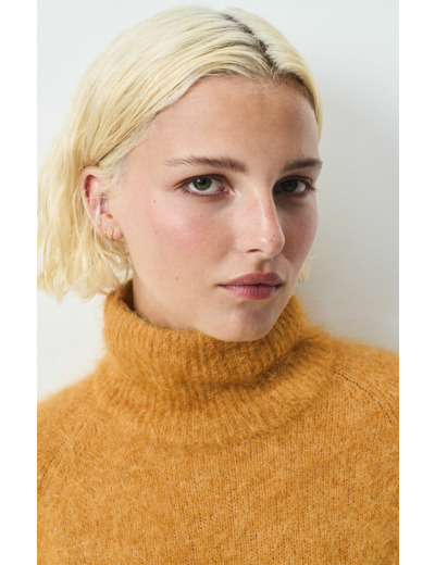Confectionné dans un mélange précieux d’alpaga, ce pull offre une texture légère et chaleureuse, idéale pour les journées fraîches. Sa coupe ajustée et ses manches longues dessinent une silhouette féminine tout en garantissant une liberté de mouvement parfaite. Le design épuré s’adapte facilement à toutes vos tenues, du jean casual à la jupe chic.