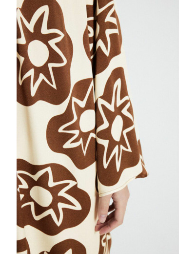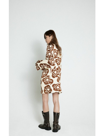 Fabriquée en 100 % viscose, cette robe nécessite un lavage délicat à 30°C, sans séchage en tambour, et un repassage à basse température pour préserver la qualité du tissu et la tenue de la coupe.