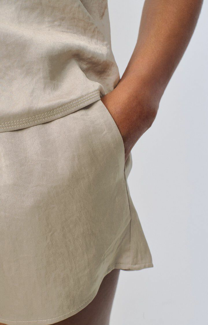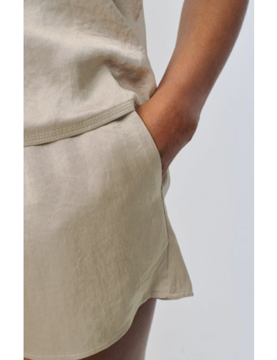 Confectionné en 100% acétate, ce short offre une texture légère et soyeuse qui épouse parfaitement la silhouette. Son design minimaliste s’adapte aussi bien à une tenue casual qu’à un look plus sophistiqué, pour une polyvalence sans compromis. Facile à porter, il devient rapidement un incontournable de votre garde-robe estivale.