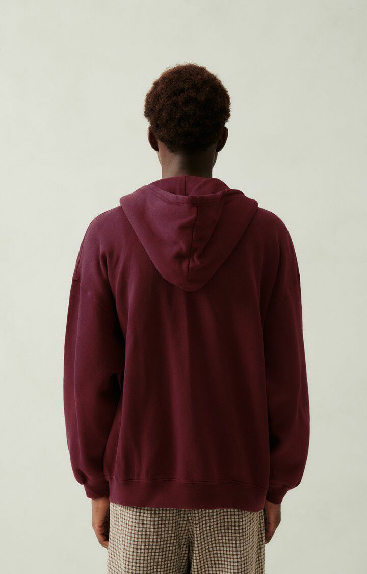 Composé à 98% de coton et 2% d’élasthanne, ce sweat se lave à 30 degrés. Le séchage en tambour est déconseillé pour préserver la qualité du tissu. Le repassage doit être effectué à basse température afin de maintenir l’aspect neuf du vêtement.