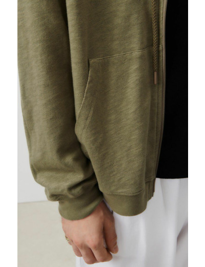 Confectionné en 100% coton, ce sweat American Vintage offre une douceur naturelle et une respirabilité optimale. Sa coupe ajustée met en valeur la silhouette tout en garantissant une liberté de mouvement idéale. La fermeture zippée apporte une touche pratique et contemporaine, parfaite pour moduler votre look selon l’humeur et la météo. Son design épuré s’intègre aisément à toutes vos tenues, du casual urbain au layering sophistiqué.
