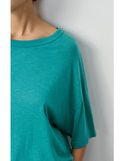 Conçu pour sublimer la silhouette sans compromis sur le confort, ce T-shirt American Vintage marie coton et viscose pour une sensation légère et agréable sur la peau. Sa texture légèrement satinée apporte une touche de sophistication discrète, idéale pour un look casual chic ou une superposition maîtrisée.