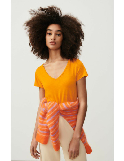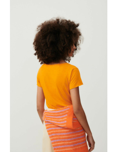 Conçu pour sublimer la silhouette sans compromis sur le confort, ce T-shirt American Vintage marie coton et viscose pour une sensation légère et agréable sur la peau. Sa texture légèrement satinée apporte une touche de sophistication discrète, idéale pour un look casual chic ou une superposition maîtrisée.