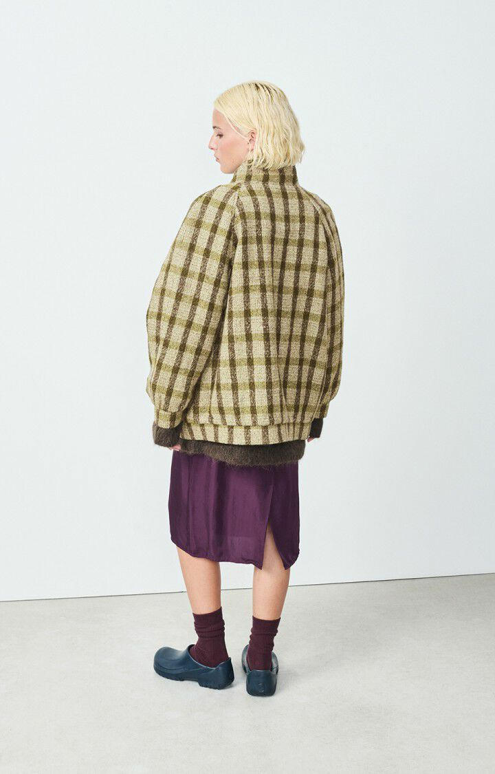 Composition : 100% laine. Nettoyage à sec uniquement pour préserver la matière et la forme. Coupe courte ajustée, fermeture discrète, finitions soignées.