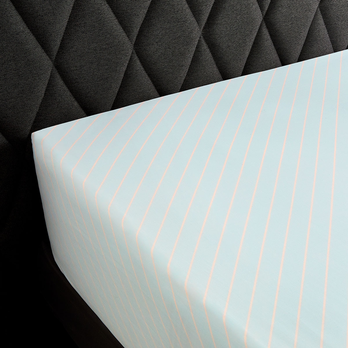 Une écriture résolument moderne pour ces fines rayures de couleur melon sur fond vert clair.