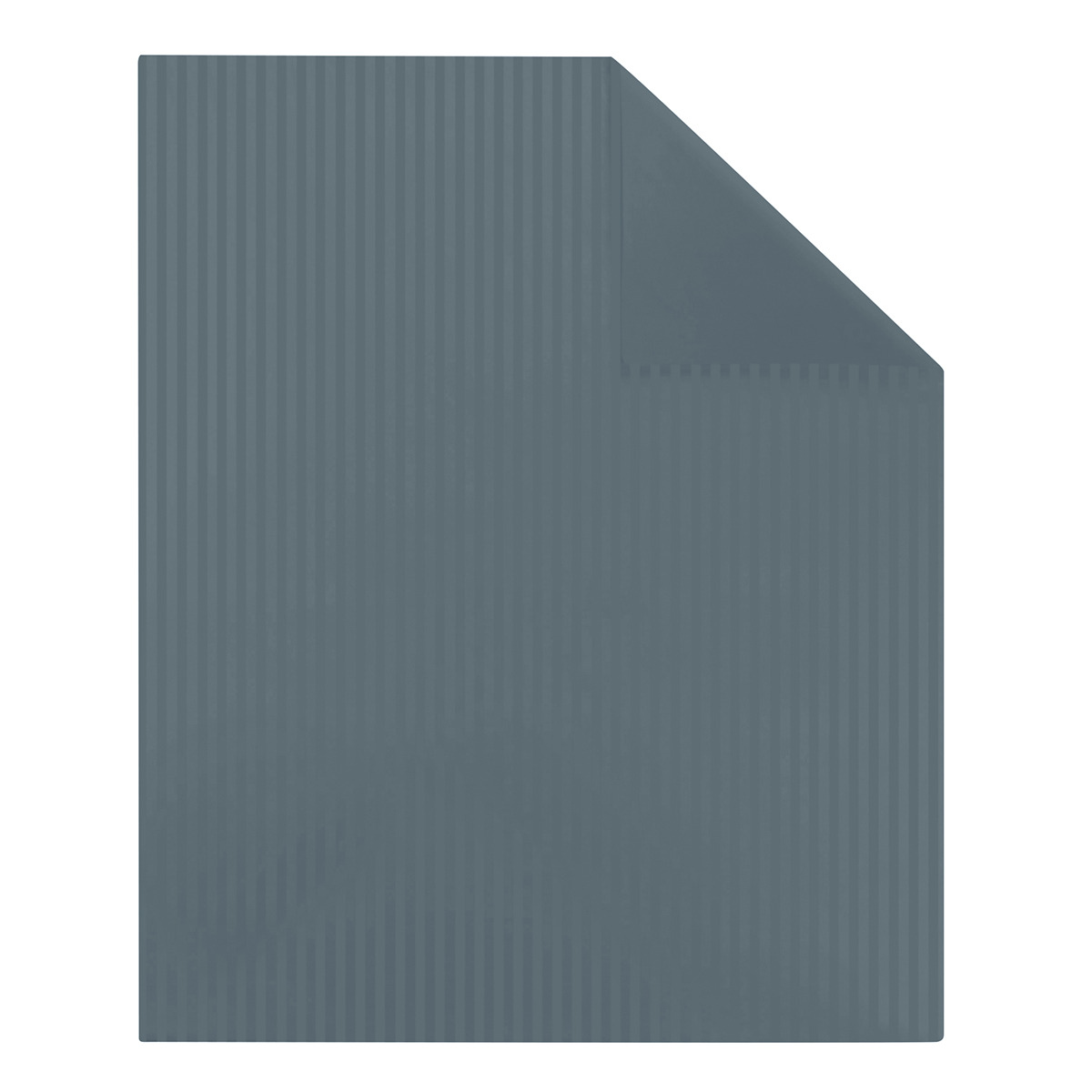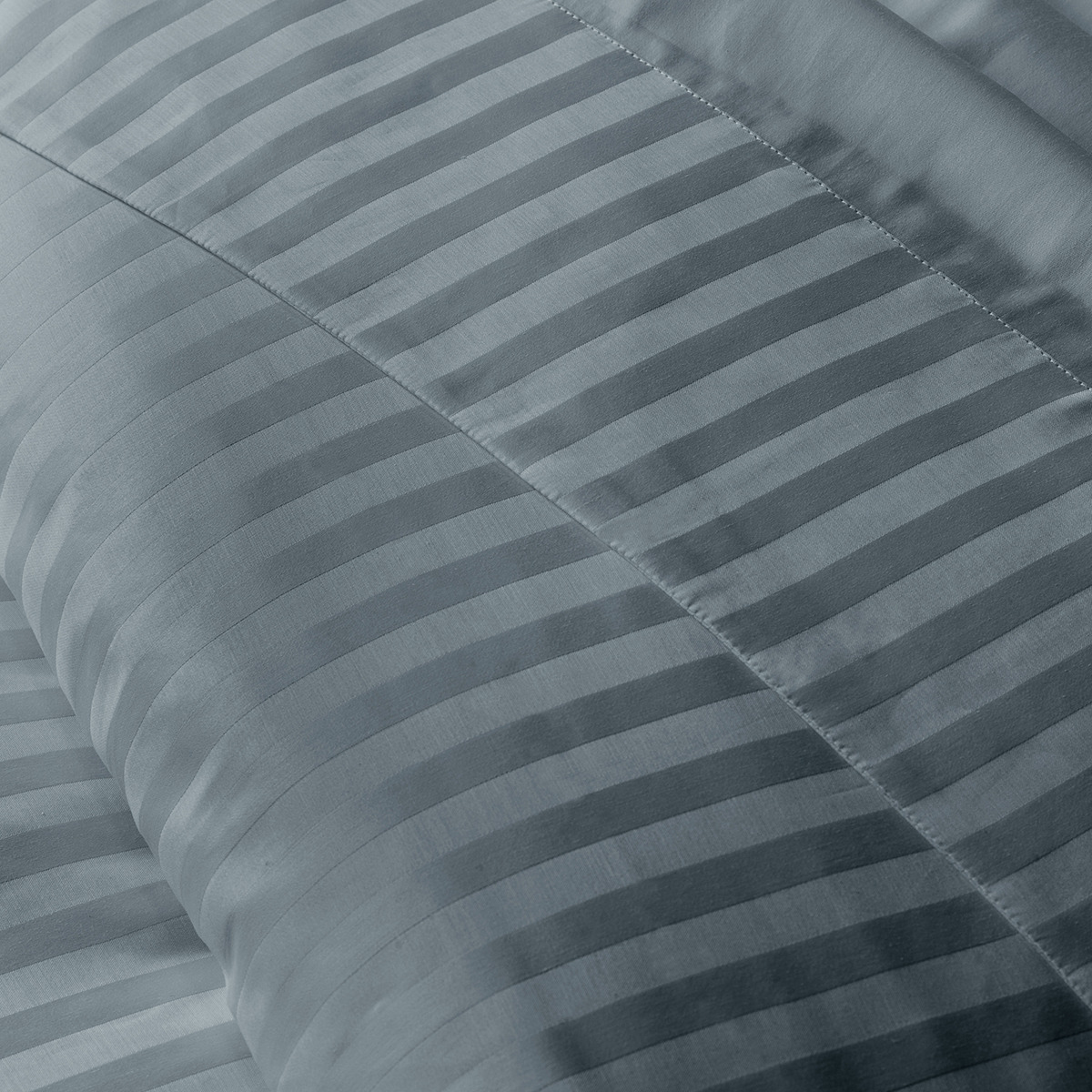 Cette housse présente un jacquard rayé au recto, tandis que le verso est en satin lisse et soyeux.