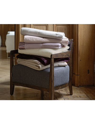 Le garnissage naturel du jeté de lit Bellevue, composé à 50% de duvet et à 50% de plumettes de canard, apporte un confort et un gonflant exceptionnel.