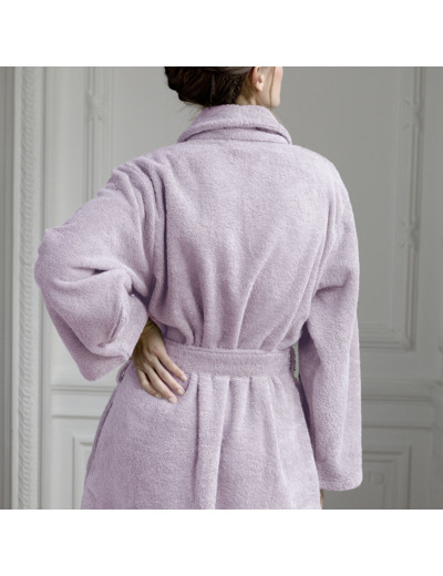 Ce peignoir est disponible en 5 tailles : XS, S, M, L et XL, et se compose d’une ceinture cousue et de poches invisibles.