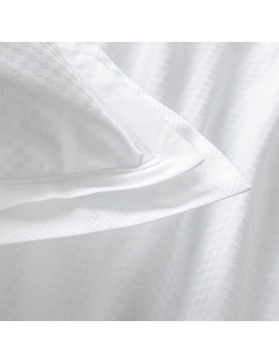 Elle est composée d’une face recto en jacquard blanc grands carreaux et d’une face verso parfaitement coordonnée en jacquard petits carreaux.