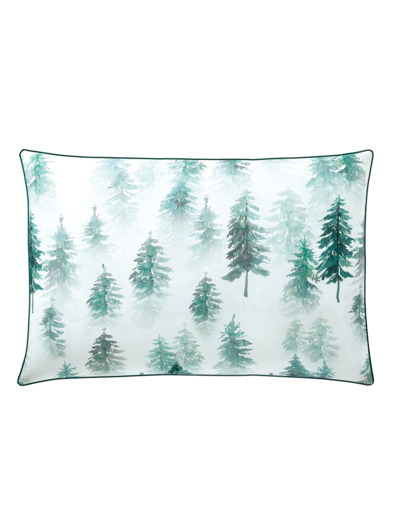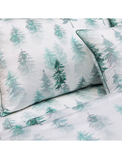 La taie d’oreiller Boréale se pare de sapins, proposant une coloration de vert.