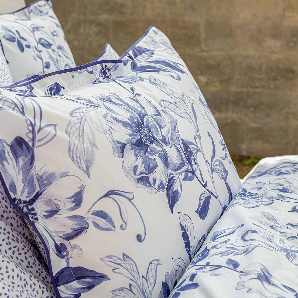 Empruntant son nom à la nymphe romaine, Égérie revisite les légendes romaines avec ses teintes bleutées et ses motifs délicats de feuilles d’Acanthe, qui inspirent par leurs arrondis et leurs déliés aquarellés. On se glisse dans ces draps soyeux, ode aux nuances azurées et à la sérénité de l'été. Un univers qui évoque la déesse Diane, protectrice des femmes et de la nature, qui murmurait à l’oreille des rois.