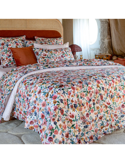 La taie est imprimée sur une percale de coton, tissée en 80 fils/cm².