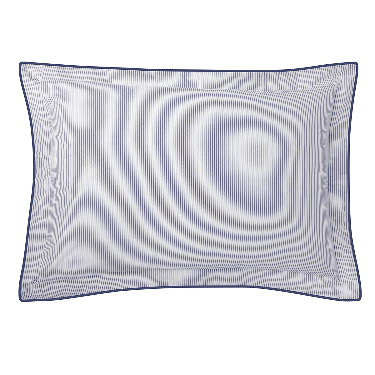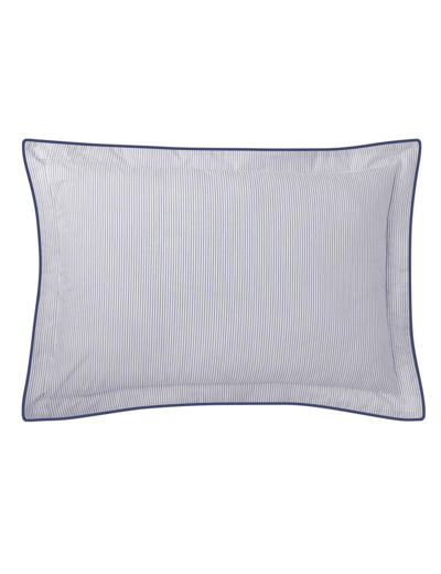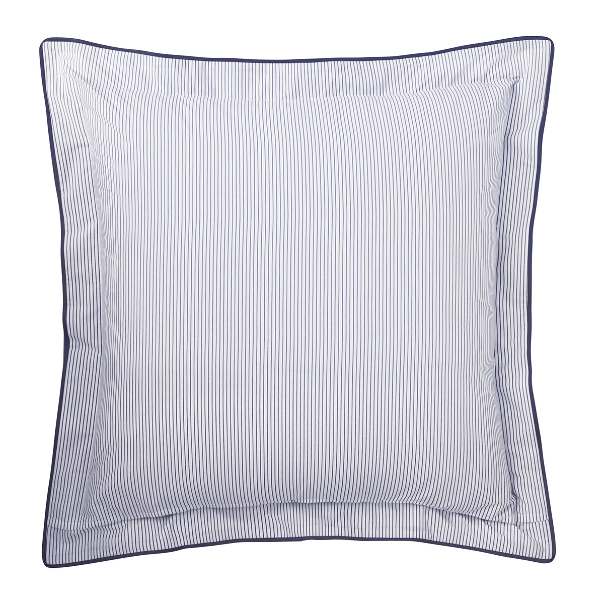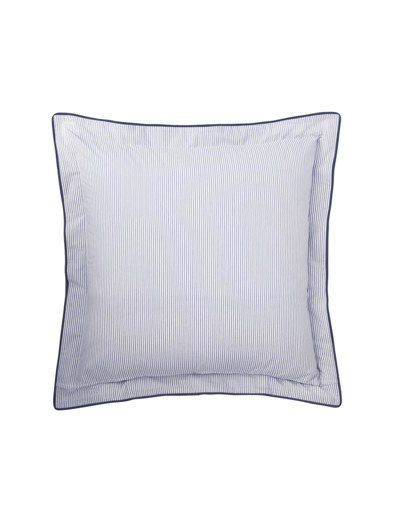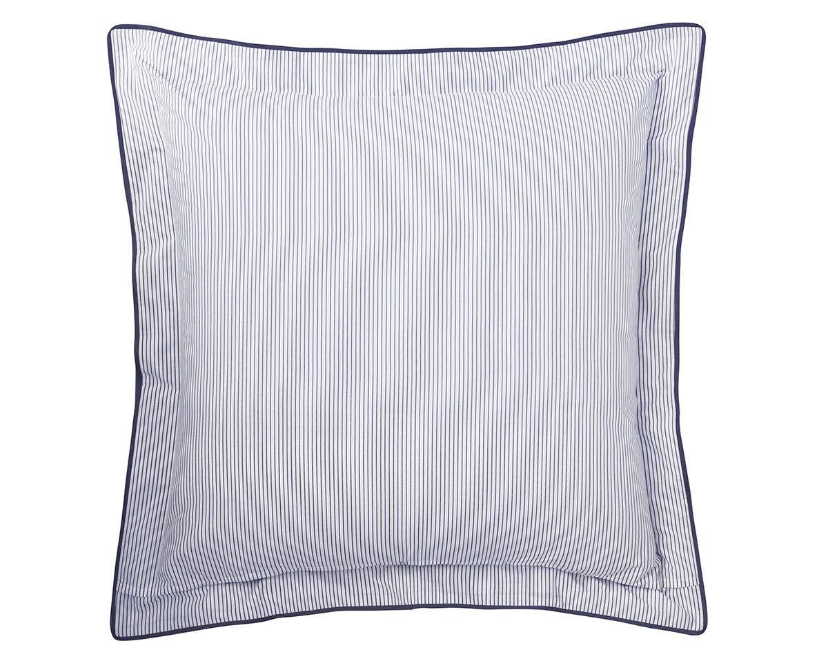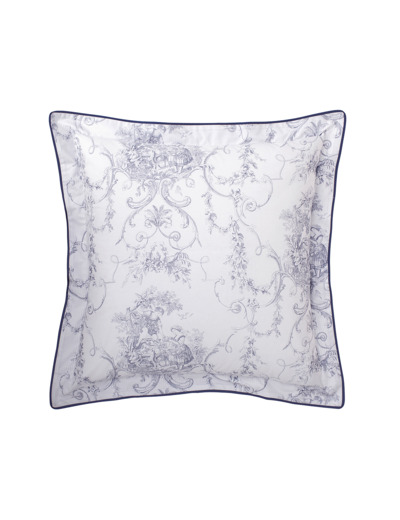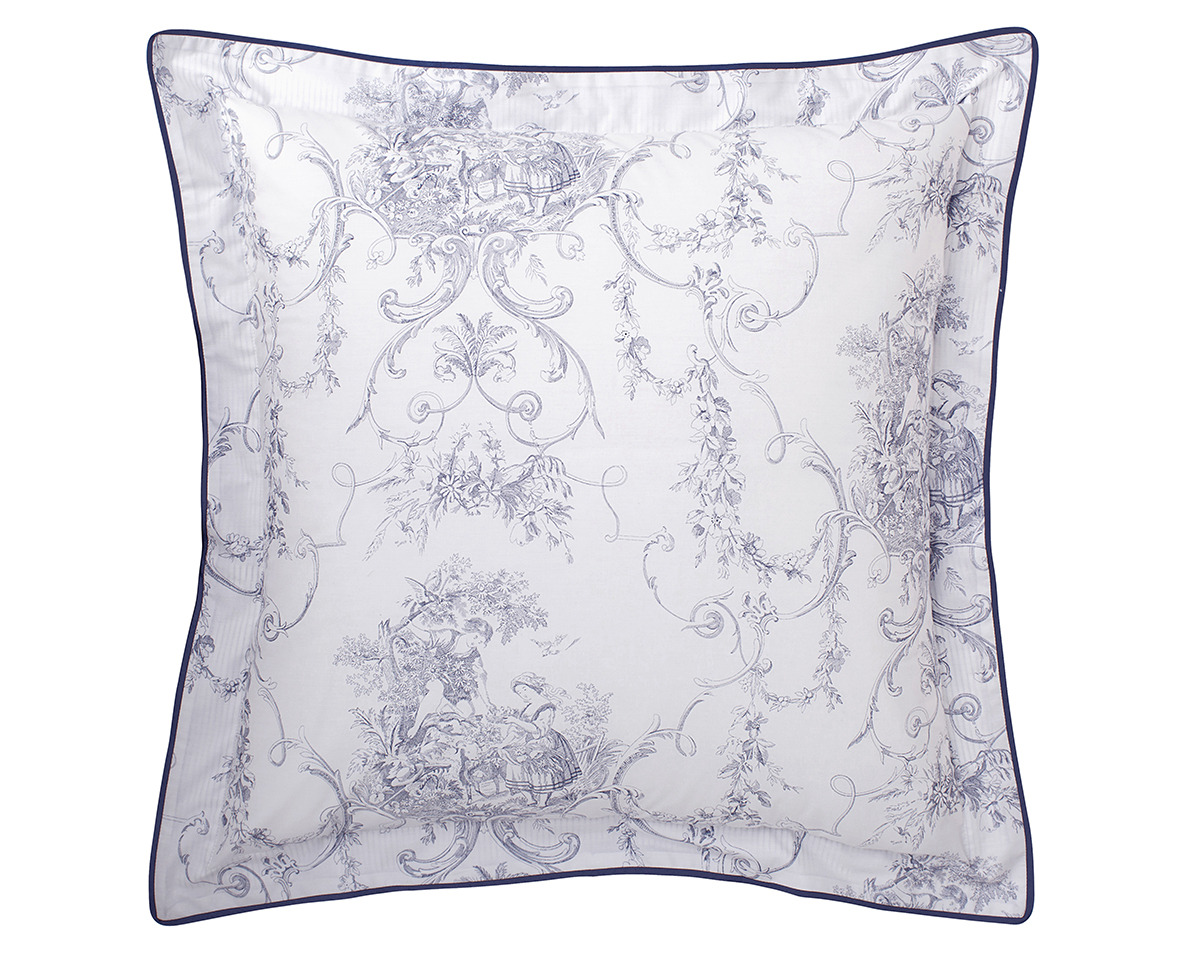 Silhouettes et paysage bucolique à l’écriture raffinée dans des nuances de gris animent la taie d’oreiller Promise. Son revers déploie un jeu de fines rayures verticales grises bleutées.