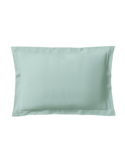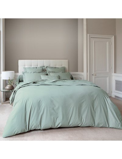Cette couleur unique évoque à la fois l'univers aquatique des algues et des herbes que l'on trouve au bord des rivières et les teintes minérales des galets et des roches. Ce mélange harmonieux de nuances est parfaitement mis en valeur grâce à la grande qualité du tissu qui compose cette taie en percale 100% coton peigné longues fibres 80 fils/cm². Elle dispose d'un volant plat de 5 cm.