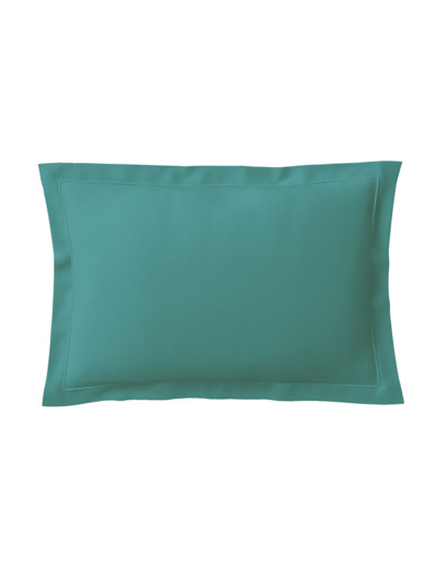 La taie d'oreiller Vexin Emeraude est composée en percale 100% coton peigné longues fibres d'une densité de 80 fils/cm². Elle dispose d'un volant plat de 5 cm.