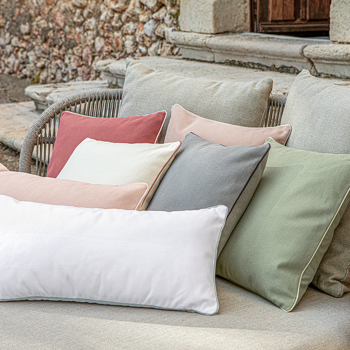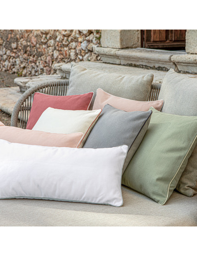 Disponible en deux dimensions, 43x43 cm et 30x60 cm, ce coussin fabriqué en Espagne, allie esthétisme et durabilité.