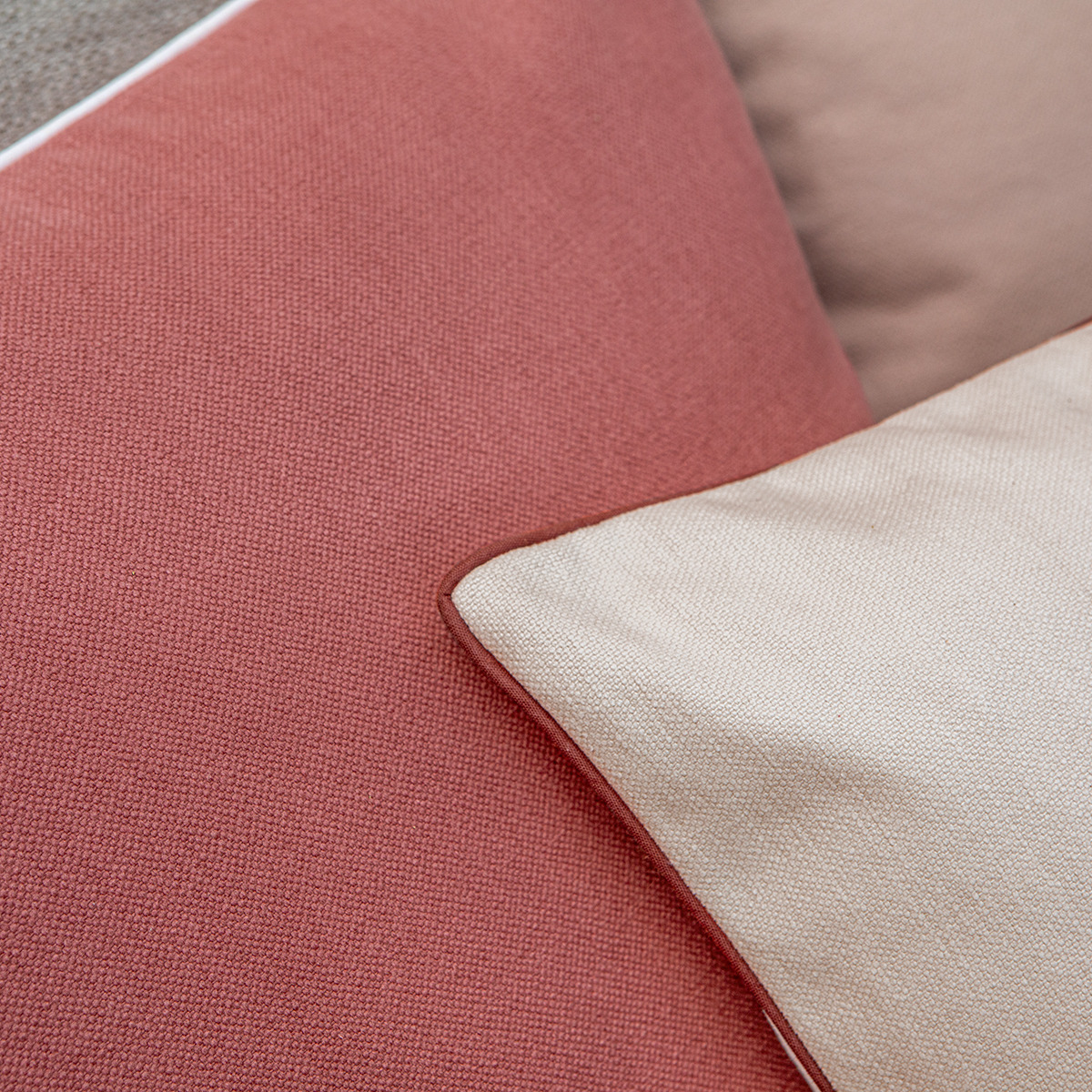 Plongez dans la richesse du terroir avec le coussin AQUARELLE en coton recyclé couleur terre de sienne. La finition passepoil ivoire offre une élégance naturelle.