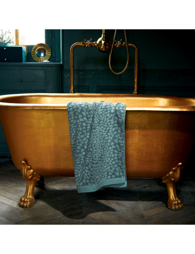 Son motif animalier vert canard et son liteau travaillé créent une ambiance envoûtante dans votre salle de bain.