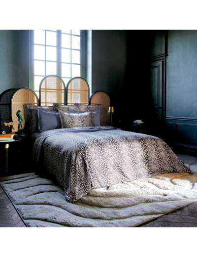A la manière des peux de cuirs de Galuchat, le semis de pois irréguliers anime le drap housse.