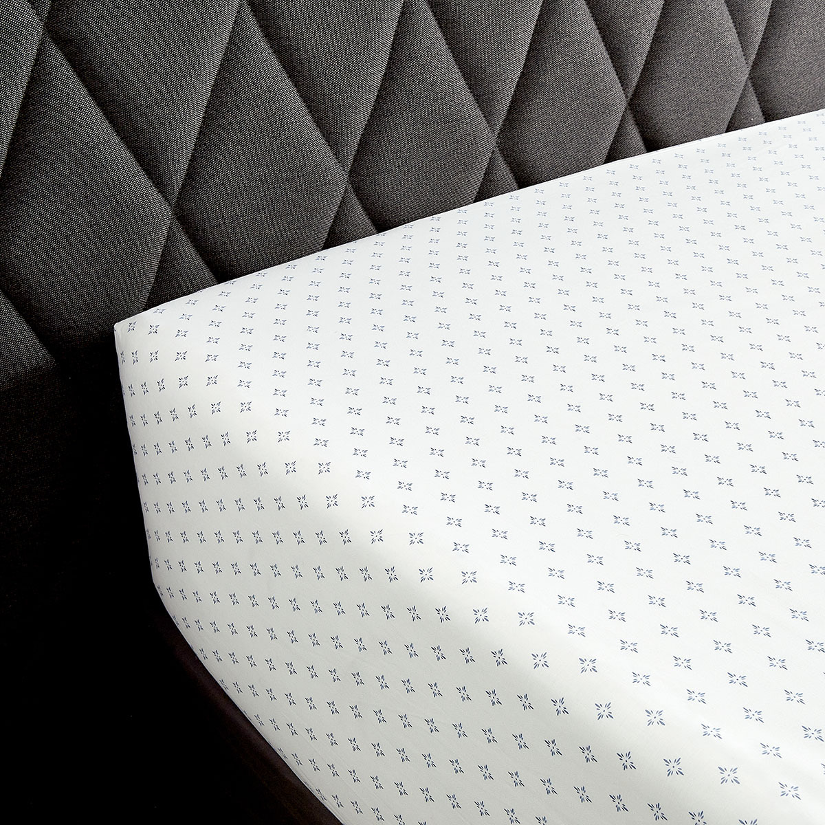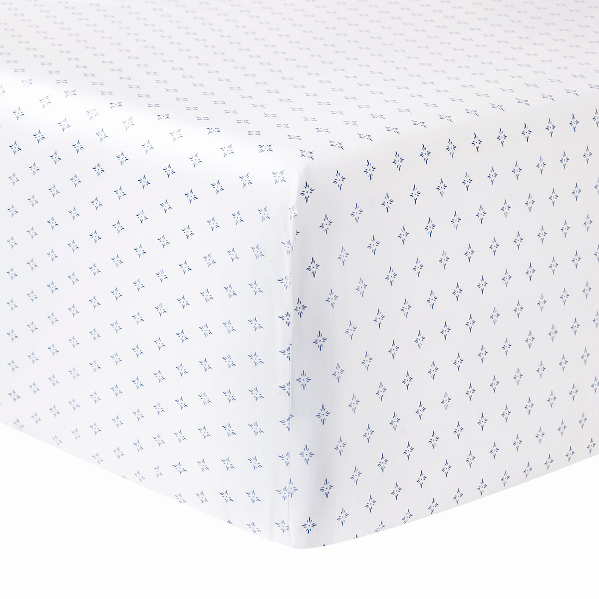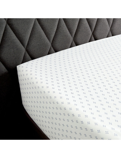 Orné d'un élégant motif de faïence bleue sur fond blanc, ce drap housse est sublimé par la percale 80 fils/cm² en coton biologique, offrant une douceur exceptionnelle tout en respectant l'environnement.
