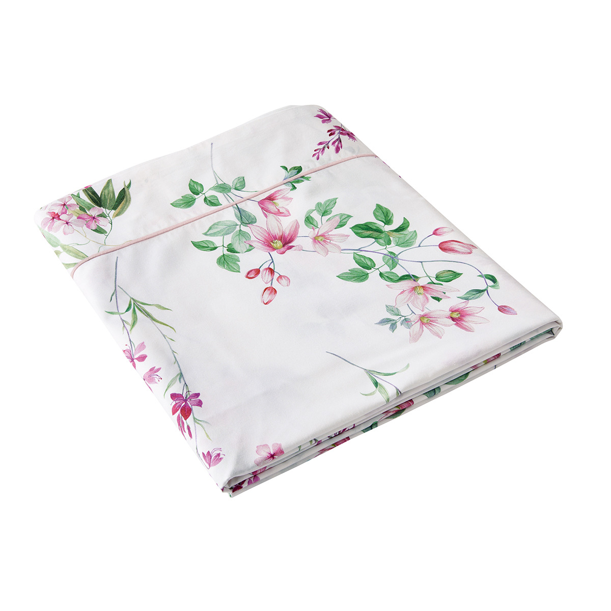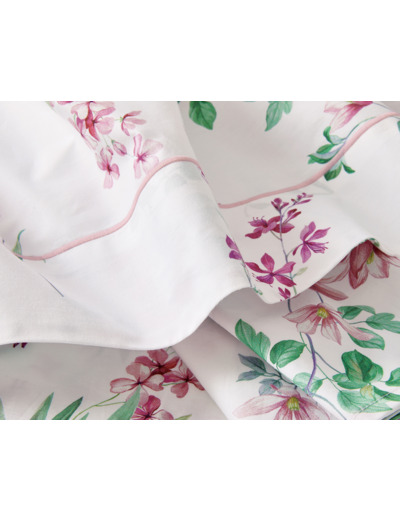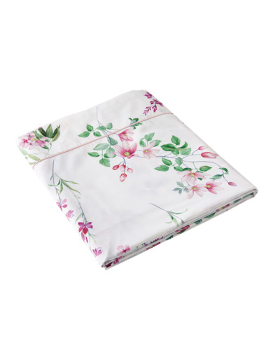 Une finition bourdon d’un rose vient le sublimer pour un rendu élégant. Le drap plat est disponible dans 2 tailles : 240 x 295 cm ainsi que 270 x 295 cm.
