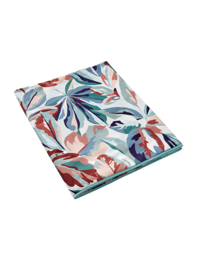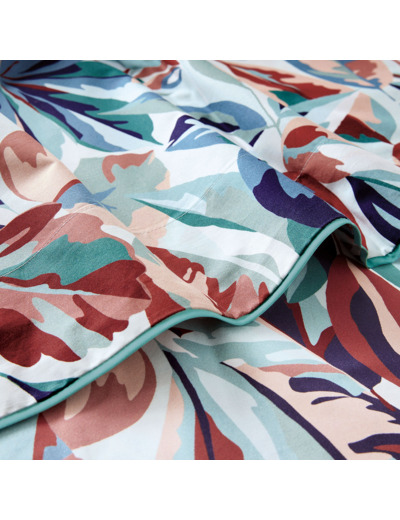 Il est disponible en deux dimensions 240 x 295 et 270 x 295 cm et s’intègre parfaitement aux autres produits composant POSTCARD : housse de couette, taies d’oreillers et drap housse, pour composer un univers exotique au cœur de la nature.
