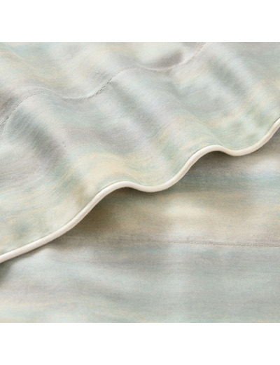 Le modèle SILLAGE est composé de la housse de couette et les taies d’oreillers. Nous suggérons l’uni satin 120 fils/cm² ECLAT Sable en drap housse et taie de traversin.