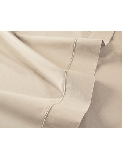 D'une qualité supérieure, le drap plat Grège possède une composition en percale 100% coton peigné longues fibres 80 fils/cm². Avec son toucher agréable de soie, il donne de la noblesse au couchage. Surpiqué d'un point bourdon ton sur ton, l'extrémité du drap se trouve souligné avec élégance. Il bénéficie de plus d'un traitement Easy Care qui permet de faciliter le repassage.