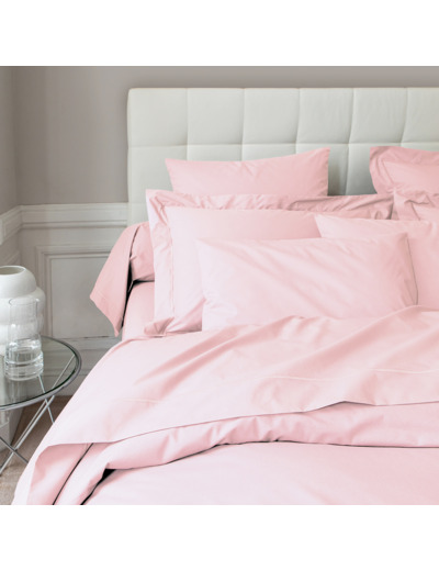 Adapté au style de couleur, le drap plat Ô de rose habille le lit d'une élégance sage et d'une allure impeccable. Parfaitement tiré avec ses extrémités glissées sous les bords du lit, il rabat sur la couverture sa bande de drap soulignée d'un précieux point bourdon en ton sur ton. Pour un lit aux tonalités parfaitement suaves, une couverture d'un rose dragée viendra donner sa touche finale.