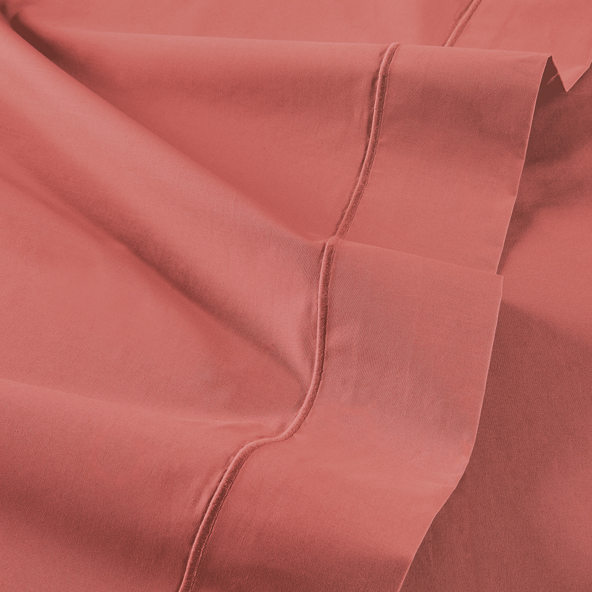 Le drap plat Vexin Terracotta a de nombreux atouts : une composition en percale 100% coton peigné longues fibres 80 fils/cm², une douceur exceptionnelle et une bonne longevité.