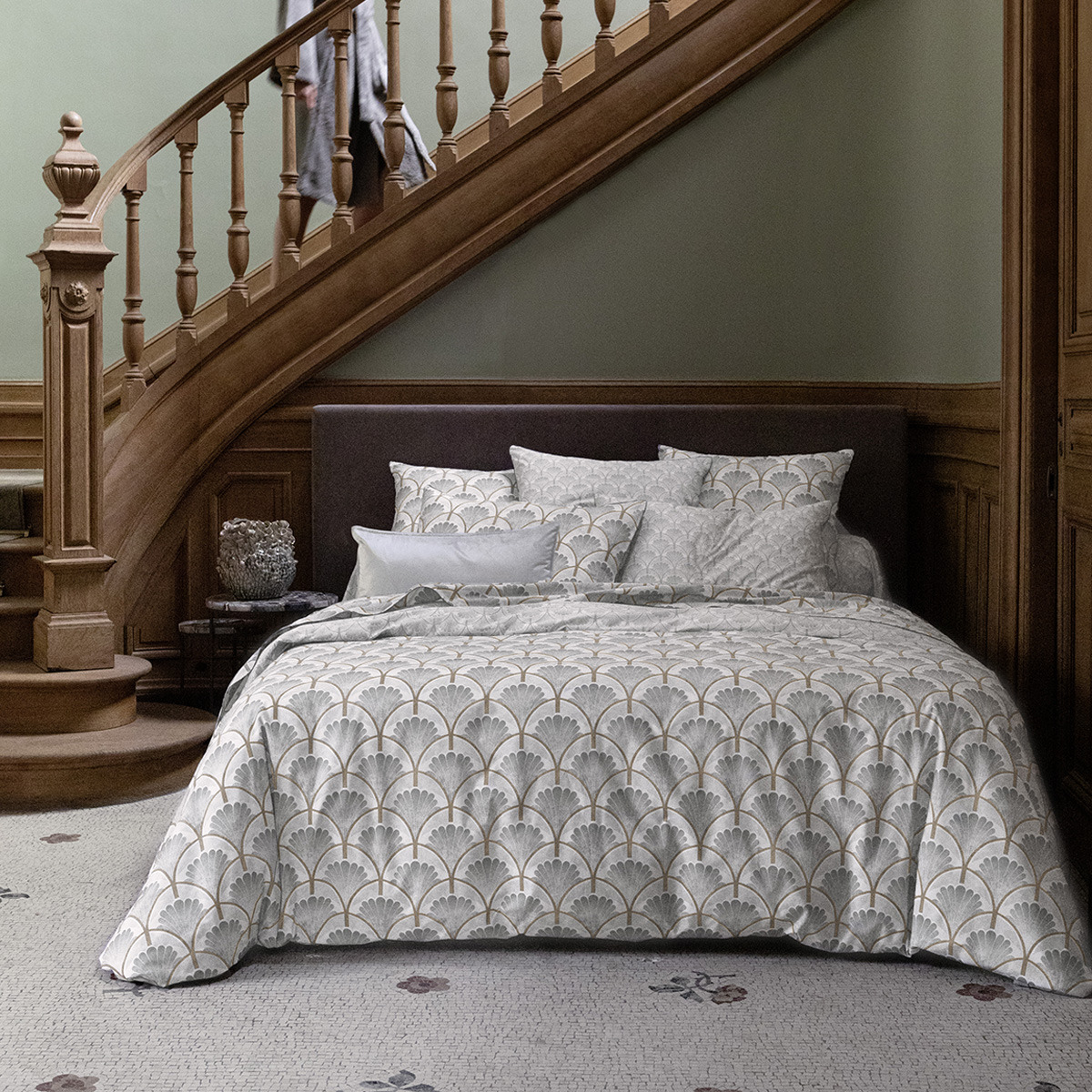 La housse de couette Archive se complète par le drap plat, le drap housse, les taies d’oreillers et la taie de traversin.