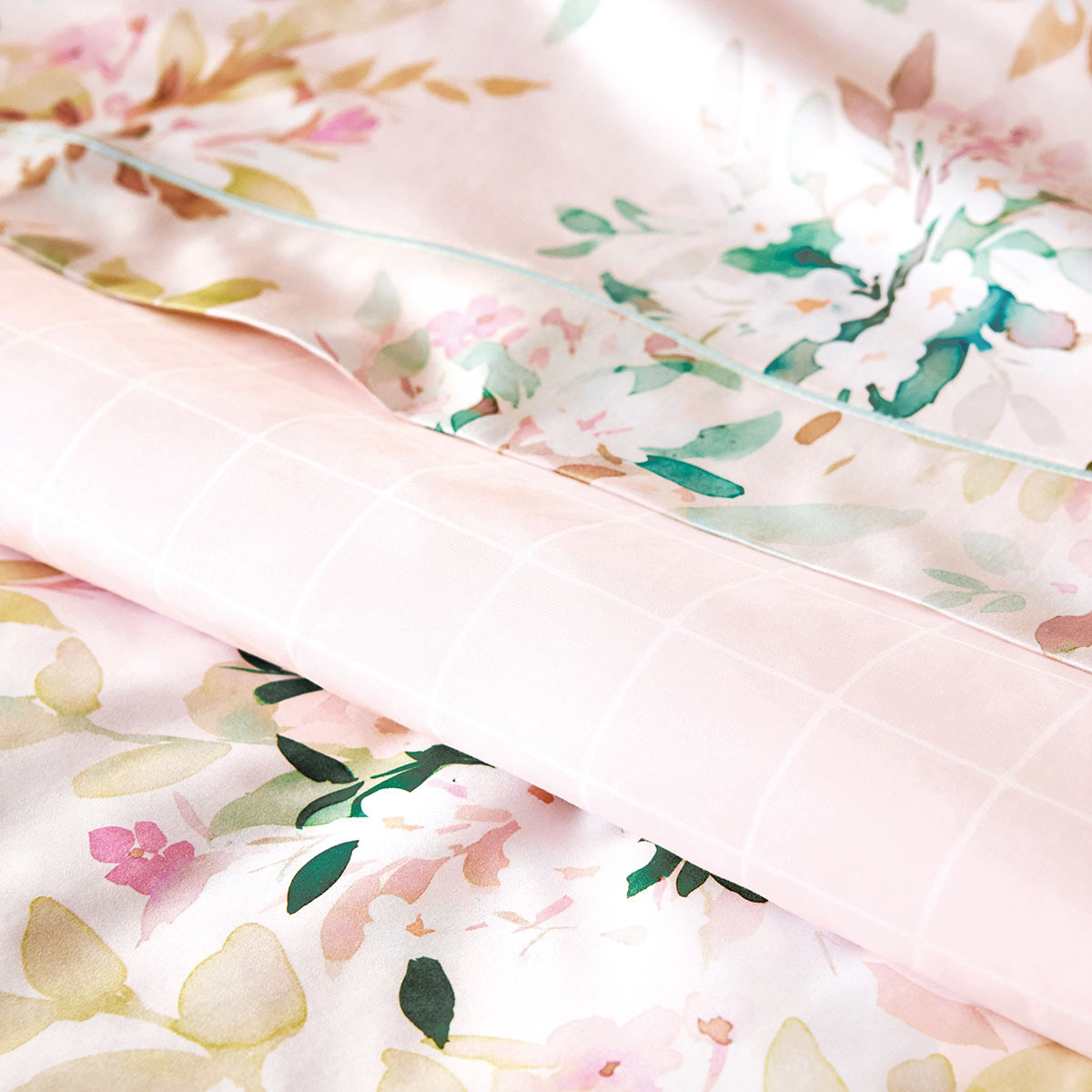 Le recto dévoile des fleurs stylisées aquarellées qui se déploient avec grâce sur un fond rose clair, tandis que le verso, se pare de carreaux délicats sur le même fond couleur pour un esprit contemporain.