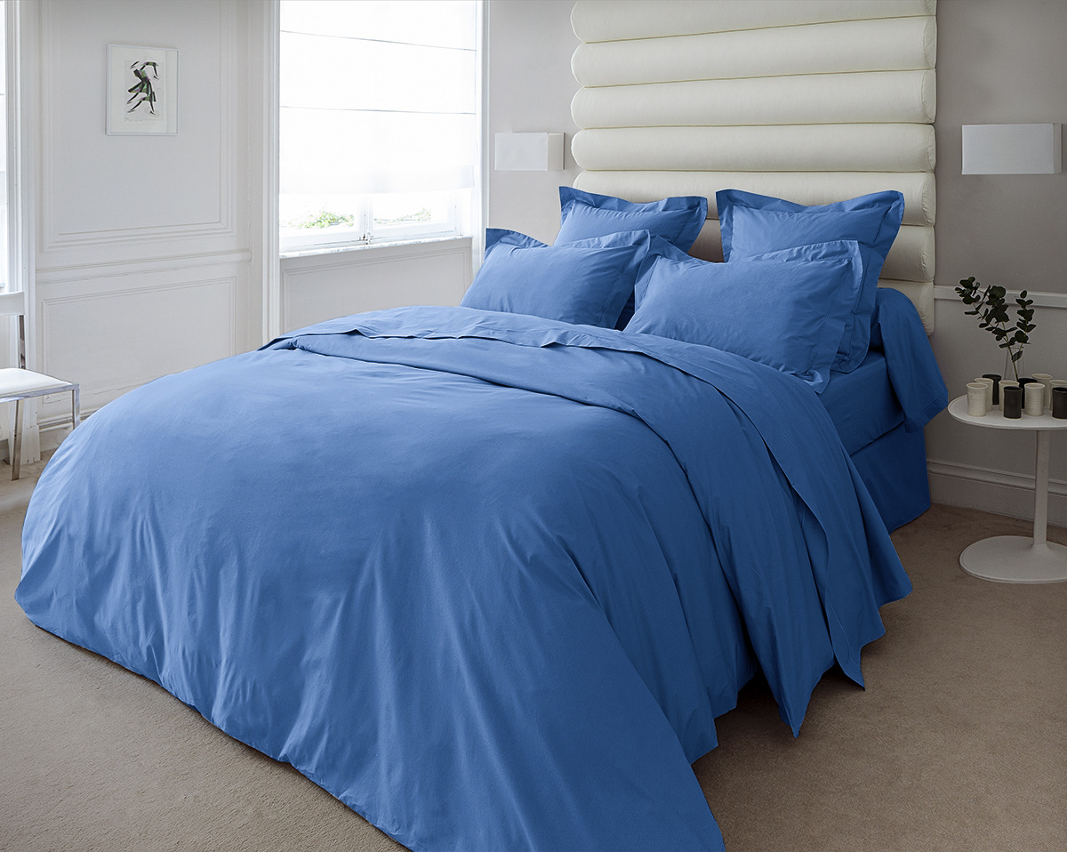 La housse de couette unie de la collection Vexin allie parfaitement esthétique et douceur grâce à sa couleur bleue classique et à son tissu de qualité premium.